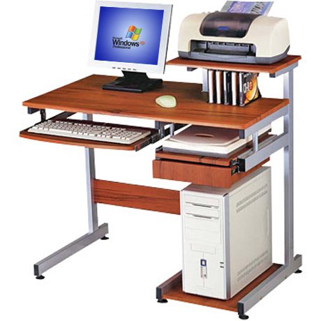 - Compact, clean lines and modern design; Stylish and versatile; Open large work area; Elevated monitor and printer shelf