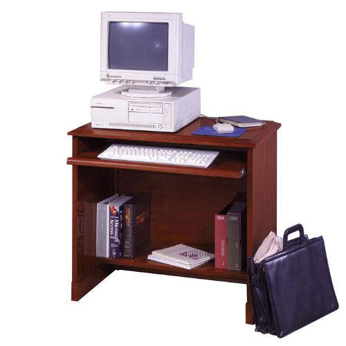 Simple lines and streamlined styling offer sleek sophistication with Eclipse. Bow front desktops with radius edges offer true user comfort and pull up conferencing. Shaped drawer fronts provide a unique aesthetic and finished appeal.Features:Constructed from wood, veneers and MDFAvailable in Cherry finish or Classic Mahogany finishTop guard finish to guard against stains and scratchesCases feature mortise and tenon constructionTop are high pressure laminate, with maple veneer on solid wood rimsOne pull out keyboard trayWire management access6" deep bottom shelfAdjustable levelers to compensate for uneven floorsSpecifications:Overall dimensions: 30" H x 32" W x 20" DWeight: 120 lbs