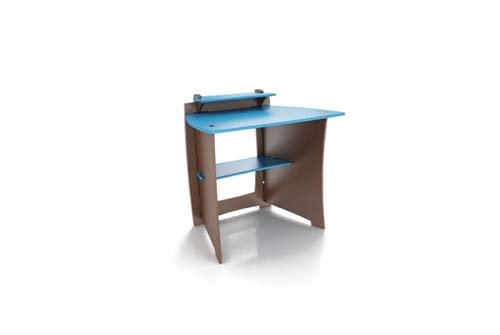 - A compact yet very efficient 34" student desk with a unique shelf that can be oriented forward to support an LCD display with keyboard storage underneath, or turned around to hold accessories and provide more room for a laptop computer instead. Plenty of knee space and a wide lower shelf for additional storage space.