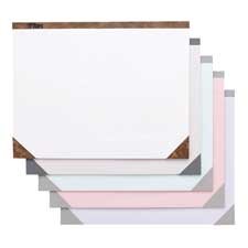 - Leather-trim perforated desk pad has sturdy board backing and holds 50-sheet paper pad.