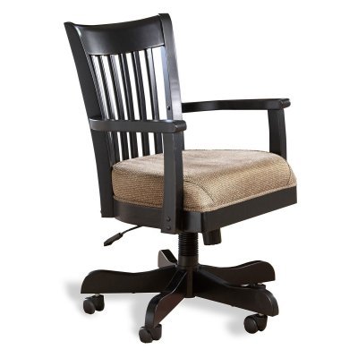 Shop for Chairs from ComputerDesks.com! If the mere mention of the word "classics" makes you think of bad period dramas and stuffy fireside chats don't worry: you're not alone. Thankfully we've found a way to mix classic style with contemporary design in the Riverside Bridgeport Computer Chair. Perfect for traditional offices that want the look of classic professionalism without sacrificing modern convenience and functionality this computer chair features a sturdy and stylish design.It's crafted of hardwood solids with a padded upholstered seat made of 35% polyester and 65% viscose fabric. The gas lift height adjustment handle and the swivel and five-prong tilt base with rocker tension adjustment knob let you change the seat height arm height and arm position to fit your comfort level. Casters provide smooth mobility letting you keep up with the pace of the modern workspace while still preserving the feel of classic design. We promise period dramas are not included.Additional Dimensions:Adjustable seat height from floor: 19-23 inchesAdjustable arm height from floor: 25.25-29.25 inchesAdjustable height between arms: 19 inchesNotes on Riverside ConstructionAll Riverside domestic furniture is constructed of fine oak ash poplar and pine wood. These wood types are durable and feature beautiful open grains that make them much preferred among furniture manufacturers. Each piece of wood is first graded for quality then kiln-dried to remove excess moisture and prevent splitting. The wood is then constructed into a high-quality furniture piece using a combination of hardwood solids and hand-selected veneers. Techniques used on Riverside pieces include dovetail joinery heavy-duty drawer roller guides and multi-step finish applications that include hand-sanding and polishing for a deep lustrous result. All Riverside furniture is given this high-quality treatment to ensure the beauty and durability of your final product.About Riverside FurnitureRiverside has been growing for