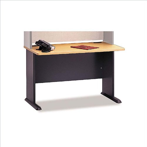 Efficiency and simplicity are the essences of the Bush Series A 48" Desk. This economical desk has a smoothed linear design that makes it a sturdy yet inviting workspace for any office suite. This desk will blend beautifully with any Series A Collection piece. Features: Standard form with trestle base Diamond Coat174; top surface is scratch and stain resistant Sturdy molded ABS feet with steel insert for stability Desktop and leg grommets for wire access and concealment Made of sturdy MDF with Beech finish Adjustable levelers for stability on uneven floor Accepts pencil drawer or keyboard shelf Sturdy 1"-thick desk surface C-leg design affords greater leg room Durable PVC edge banding protects desk from bumps and collisions The American National Standards Institute (ANSI) and the Business and Institutional Furniture Manufacturer's Association (BIFMA) work together to produce voluntary standards that provide a common basis for evaluation of product safety, durability and structural adequacy. Bush Furniture meets ANSI,BIFMA standards and is considered appropriate in quality and durability to meet the demands of commercial office use.