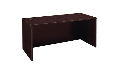 Make an executive decision to improve your home office. The Bush Mocha Cherry Corsa Series C Desk is a grand addition to any office environment, either standing on its own, or blending beautifully with any Corsa Collection piece. Features: Standard form with credenza base Sturdy MDF construction with Mocha Cherry finish Durable melamine surface resists scratches and stains PVC edge banding protects against bumps and collisions Grommets in desktop allow wire management and cord concealment Leveling glides adjust for uneven floors Mobile and 3,4 Pedestals fit below desk The American National Standards Institute (ANSI) and the Business and Institutional Furniture Manufacturer's Association (BIFMA) work together to produce voluntary standards that provide a common basis for evaluation of product safety, durability and structural adequacy. Bush Furniture meets ANSI,BIFMA standards and is considered appropriate in quality and durability to meet the demands of commercial office use.